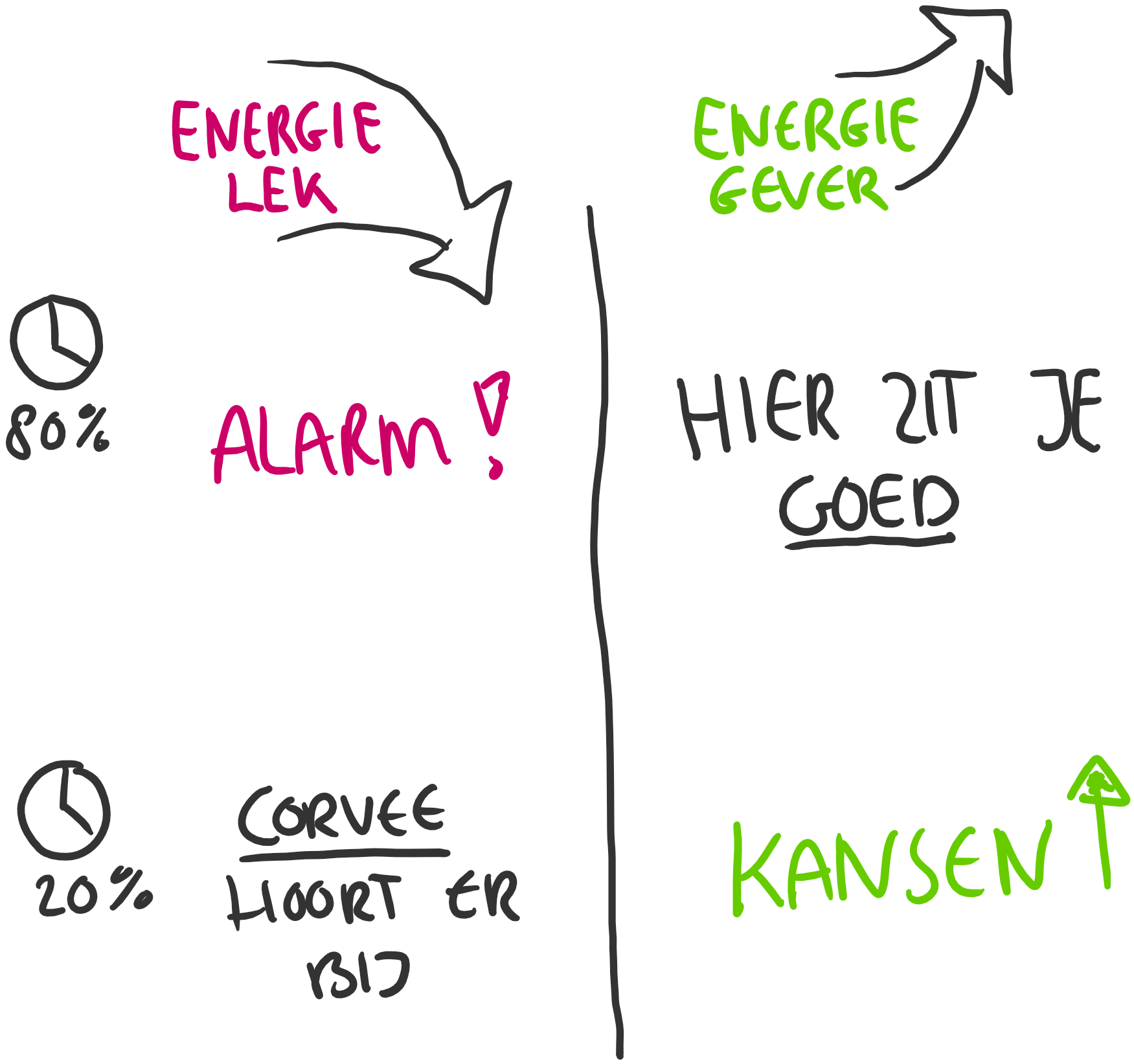 - Orden ze naar energiegever & energienemer. Je plakt bovenaan wat je veel doet en onderaan wat je weinig doet.